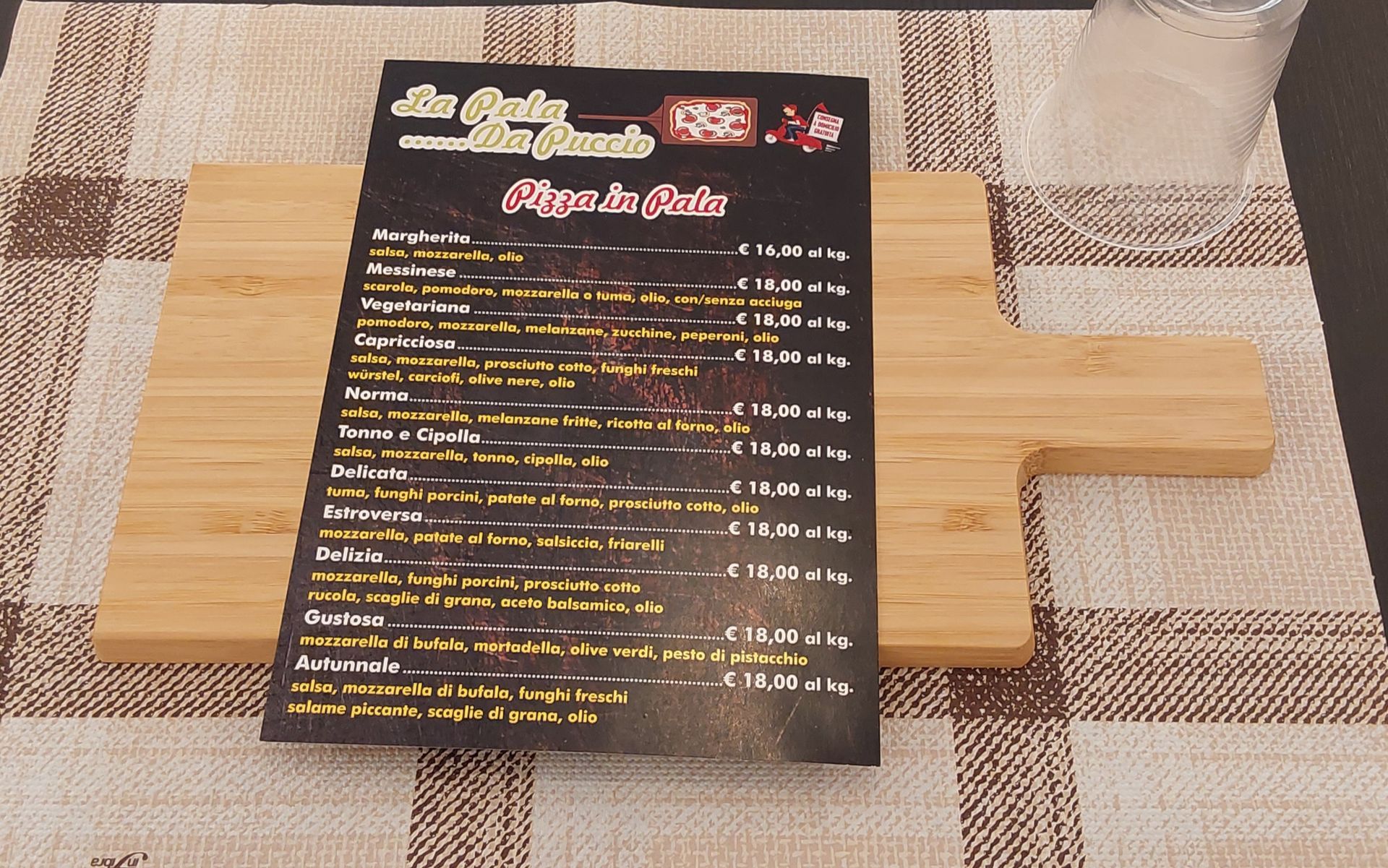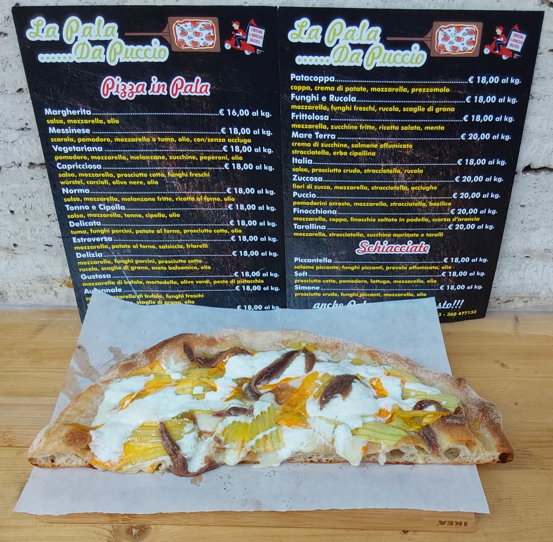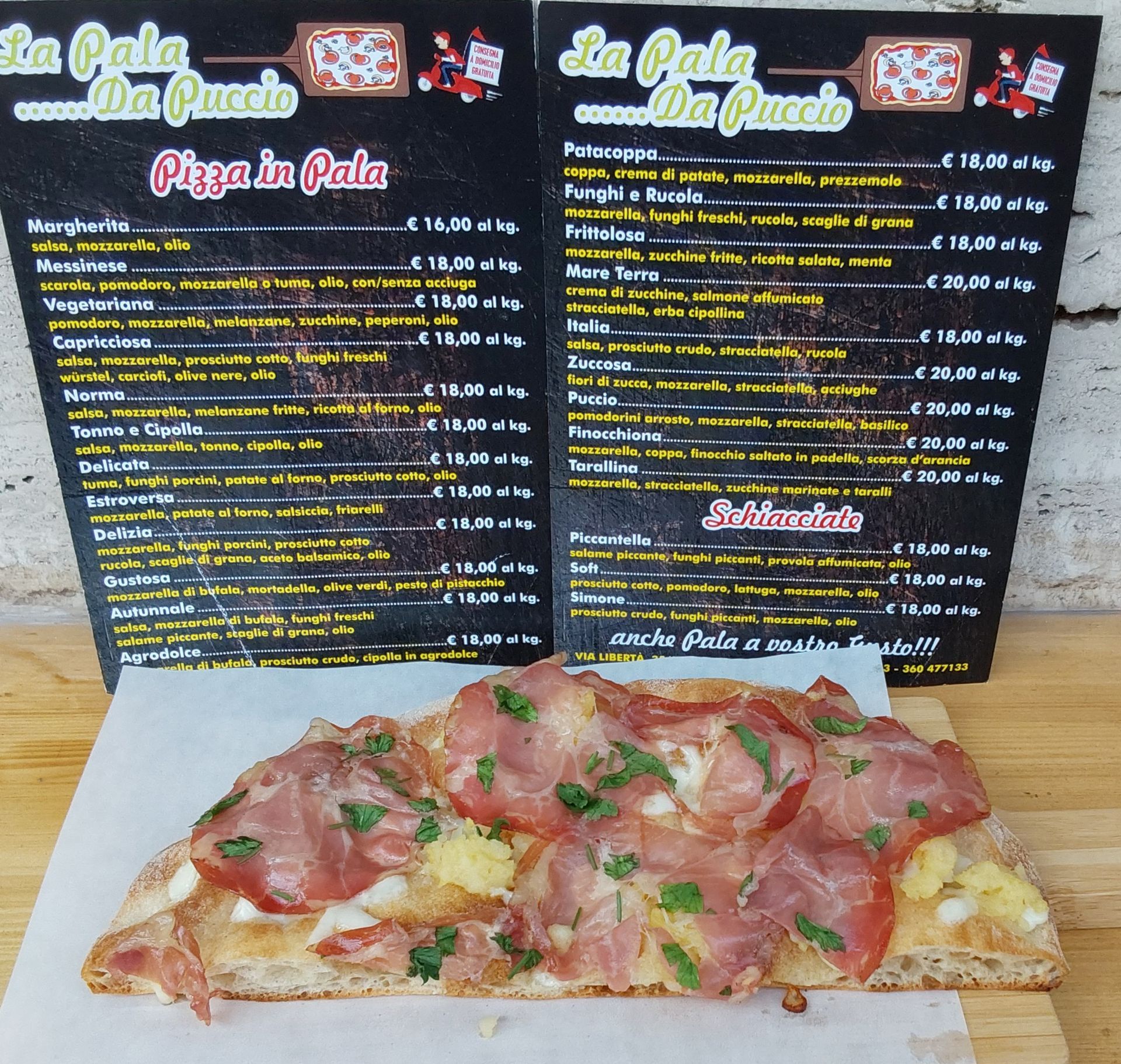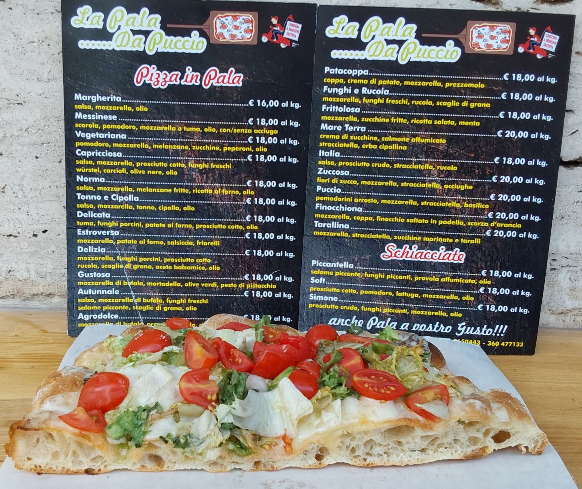 La pizzeria rosticceria La Pala da Puccio a Capo d'Orlando, è specializzata nella tradizionale pizza in pala messinese. Preparata con impasto semi integrale di farina macinata a pietra e con ben 48 ore di lievitazione, viene proposta in tante versioni. Dalle classiche e tradizionali alle speciali con prosciutto crudo e cipolla in agrodolce; con coppa e crema di patate; con funghi e rucola; con zucchine fritte, ricotta salata e menta; con salmone affumicato, stracciatella ed erba cipollina; con prosciutto crudo, stracciatella e rucola; con fiori di zucca, stracciatella ed acciughe. Vieni ad assaporare le nostre pizze in pala con la possibilità di creare la tua pizza a tuo gusto!